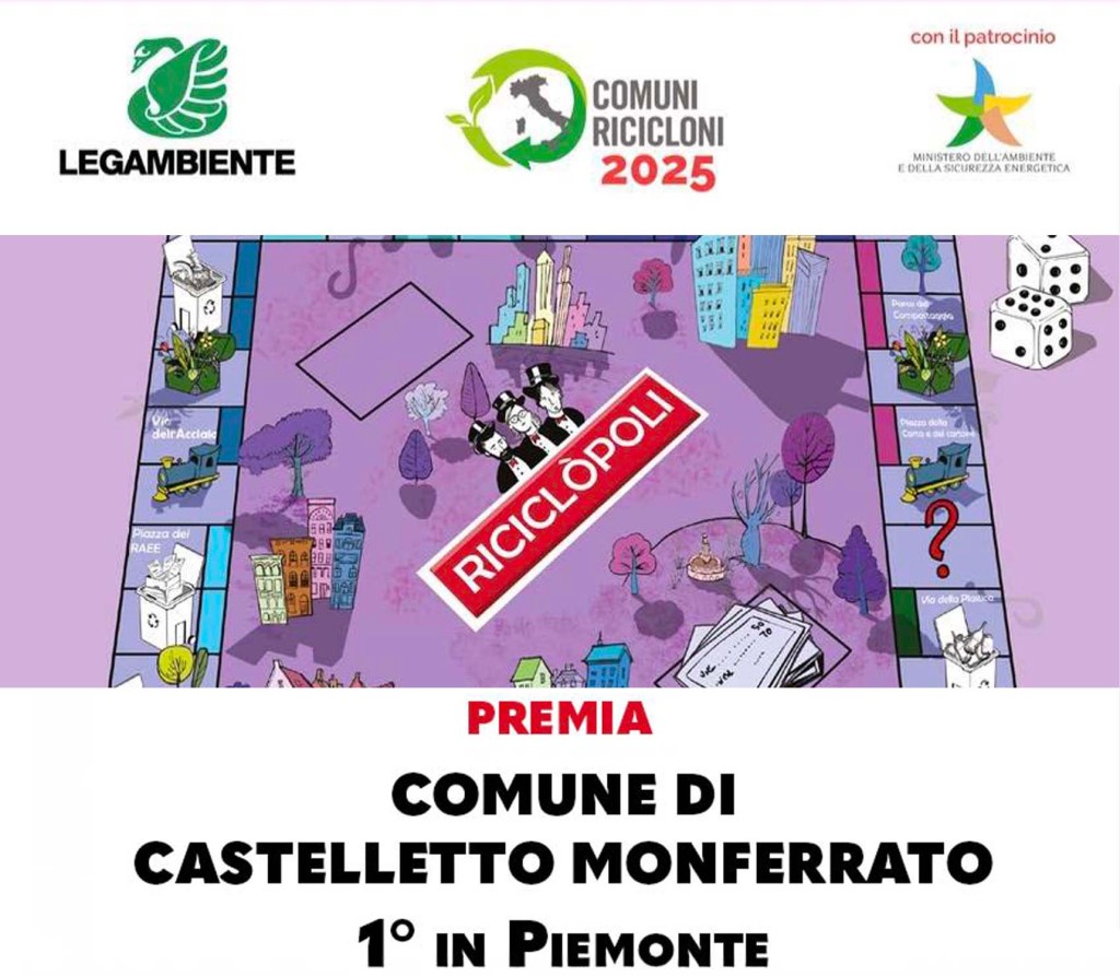 Castelletto Monferrato conquista un risultato di assoluto rilievo: con l’89,1% di raccolta differenziata nel 2025, il nostro Comune si colloca al primo posto in Piemonte. Un traguardo che non arriva per caso, ma che è il frutto di un percorso costruito nel tempo, basato su collaborazione, responsabilità e visione condivisa. Castelletto Monferrato Castelletto Monferrato conquista un risultato di assoluto rilievo: con l’89,1% di raccolta differenziata nel 2025, il nostro Comune si colloca al primo posto in…