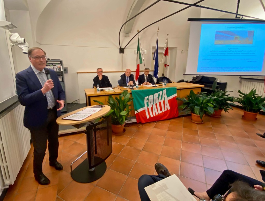 Al convegno si è discusso dell’importante ed attuale tematica relativa alla transizione energetica, argomento sul quale poggerà lo sviluppo economico, ambientale, produttivo, agricolo e sociale del nostro paese nei prossimi anni. All’incontro hanno preso parte tutte le categorie, rappresentanze e associazioni economiche, produttive, agricole e sociali della provincia di Alessandria e regionali piemontesi. Oltre agli approfondimenti di carattere politico ed amministrativo, ampio spazio è stato dato alle argomentazioni tecniche tra cui quelle relative alle “Comunità Energetiche Rinnovabili” curata dall’arch. Mariateresa Favola e quelle sul “Progetto Agrovoltaico” curato dall’ing. Federico Micheli. Inoltre gli intervenuti hanno potuto confrontarsi direttamente con il Ministro Gilberto Pichetto sulle questioni di carattere ambientale ed energetico legate al nostro territorio e non solo. Vogliamo che il nostro territorio diventi protagonista nella transizione energetica – commenta Gianluca Colletti Sindaco di Castelletto Monferrato e moderatore del convegno – la quale segnerà una nuova era di sviluppo ambientale, economico, produttivo, agricolo e sociale. Il dovere della politica deve essere quello di informare, discutere sulle idee e dare nuove energie agli operatori dei vari settori (economici, produttivi, artigianali, ecc..) per accrescere il benessere collettivo realizzando progetti concreti. Unitamente alle risorse messe a disposizione dal PNNR, dovremo avere la capacità di coinvolgere sia la componente privata sia pubblica, solo così potremo rilanciare l’economica del nostro territorio con responsabilità e sostenibilità. Con l’incontro di venerdì a Novi Ligure – commenta Ugo Cavallera coordinatore provinciale di Forza Italia Alessandria – abbiamo voluto affrontare un tema complesso come quello della trasformazione energetica del nostro paese. Fondamentale è stata la presenza del Ministro Gilberto Pichetto Fratin, grazie al quale si è potuto rappresentare un quadro molto ampio che va ben oltre i nostri confini territoriali. La questione energetica riguarda tutti noi, imprese e famiglie, la presenza del Ministro ci ha dato modo di acquisire le informazioni aggiornate dandone risalto nell’immediato al nostro tessuto sociale, commerciale, produttivo ed agricolo.Infine – conclude il Coordinatore cittadino di Novi Ligure Giuseppe Rapisarda – al convegno dopo i ringraziamenti dovuti ai relatori e il saluto ai partecipanti, ho evidenziato che le tematiche oggetto dell’incontro dovranno essere parte fondamentale del prossimo programma di mandato della futura amministrazione comunale, al fine di sostenere le imprese e le famiglie.