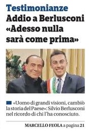 Non dimenticherò mai i pranzi di Natale ad Arcore passati con il Presidente; ci voleva a casa sua per farci personalmente gli auguri ed in maniera particolare per discutere sugli accadimenti politici dell’ultimo anno e per parlare del futuro del nostro paese. Quelli erano momenti veramente speciali: si parlava di politica, di impresa, di sport ed immancabilmente si concludeva con le sue barzellette (era un fenomeno). Io come tantissimi milioni di italiani, ho creduto al suo progetto liberale per un’Italia moderna, diversa dal passato, a misura d’uomo dove lo Stato è al servizio del cittadino e non il contrario. Con Forza Italia, il suo movimento politico, abbiamo girato l’Italia in lungo e in largo per emozionanti conventions, campagne elettorali ed eventi. Ci ha dato la possibilità di stringere amicizie, conoscere illustri personaggi di diversi settori, vivere esperienze irripetibili. Se un giorno avrò la fortuna di avere dei nipoti mi divertirò a raccontare loro di questa esperienza unica, di un uomo fuori dal comune che con sacrificio, impegno e capacità ha saputo eccellere in tutto nella vita; magari anche con un pizzico di pazzia perché, come diceva sempre citando Erasmo da Rotterdam, “le idee migliori non vengono dalla ragione, ma da una lucida, visionaria follia”. GRAZIE PRESIDENTE SILVIO BERLUSCONI!!!