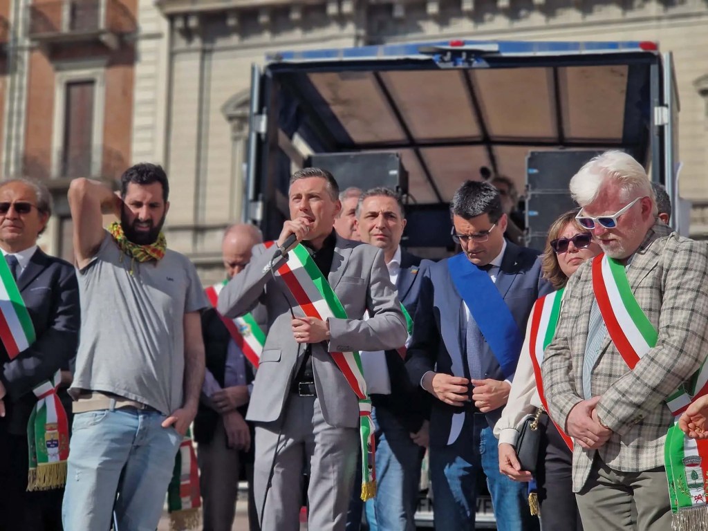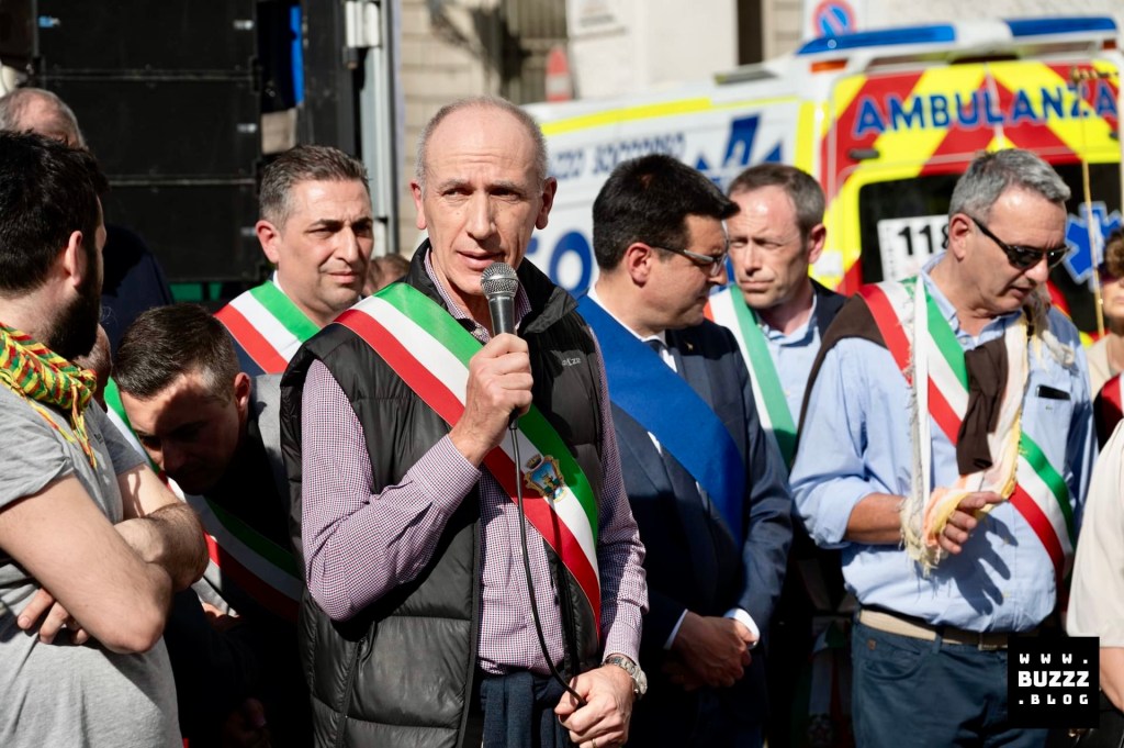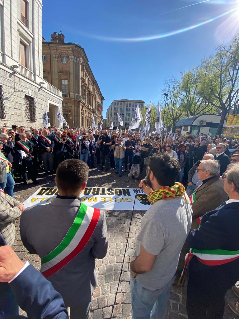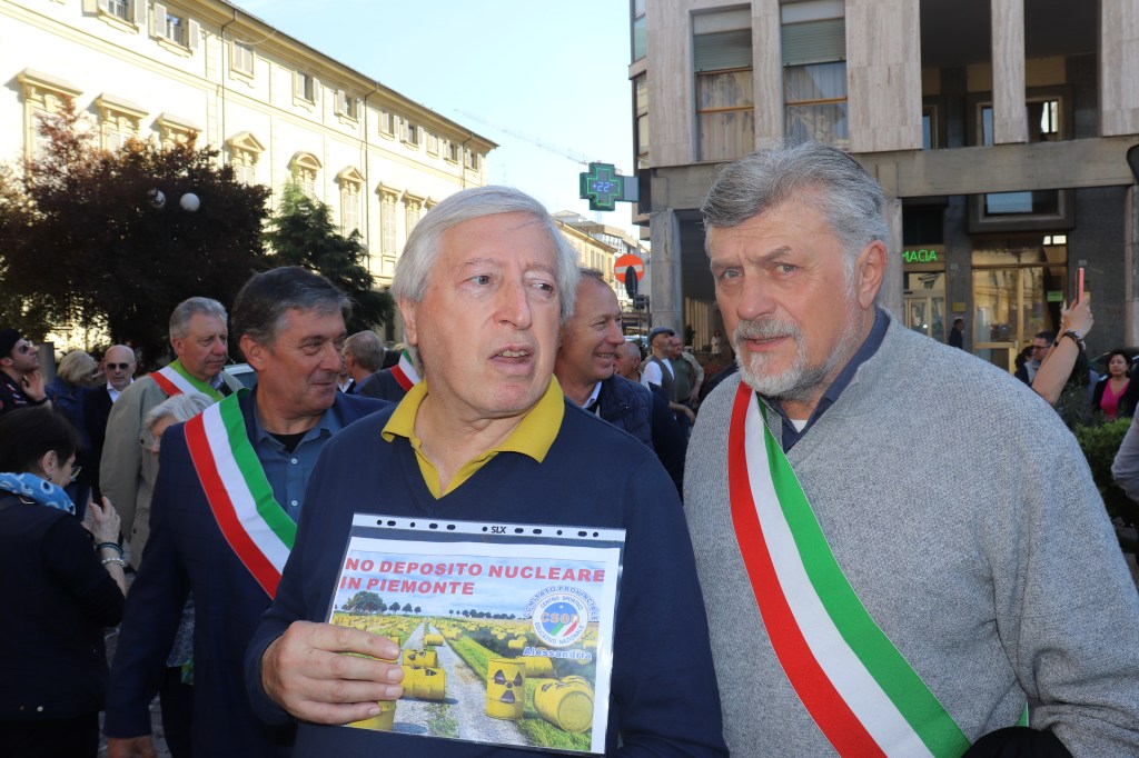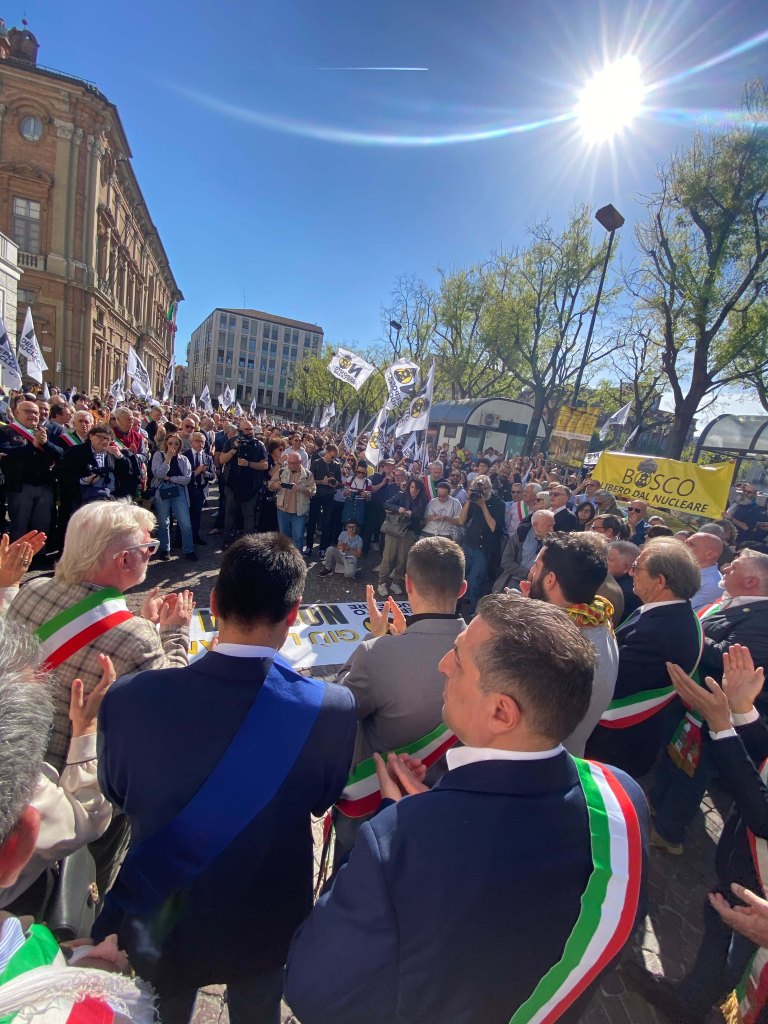 Giù le mani dalla nostra terra! E’ questo il messaggio gridato a voce alta da più di 2 mila partecipanti alla Mobilitazione Generale di Sabato 6 Aprile in Alessandria. Ben 110 Sindaci accompagnati da cittadini, comitati e associazioni di vario genere hanno partecipato alla protesta pacifica contro l’installazione del Deposito di Scorie Nucleari sul territorio della provincia di Alessandria. Abbiamo trasmesso a Sogin più di mille pagine di documentazione tecnico-scientifica a dimostrazione dell’inidoneità del nostro territorio ad ospitare il deposito di scorie radioattive – commenta il promotore della mobilitazione e Sindaco di Castelletto Monferrato, Gianluca COLLETTI. Sin dal primo giorno della nostra attività divulgativa sulle ragioni del no al deposito, abbiamo sostenuto la necessità che si realizzi un impianto per contenere i rifiuti radioattivi, ed in particolare maniera quelli derivanti dalla produzione di energia nucleare, in un luogo idoneo e sicuro. La posizione degli Amministratori locali, comitati, associazioni e cittadini si basano su dei criteri oggettivi ed in nessuna maniera ideologici. La nostra non è una battaglia contro il nucleare, bensì una presa di coscienza a tutto campo sulle problematiche ambientali che subisce ormai da decenni il nostro territorio. Le falde affioranti, le aree di ricarica degli acquiferi profondi e il complicato reticolo idrografico che presenta il Piemonte sono tra le tante tematiche affrontate con tecnici, università e consulenti accreditati di vario genere, dai quale emerge chiaramente l’impossibilità di realizzare un deposito da 150 ettari (207 campi dal calcio) contenente scorie radioattive e che sarebbe costantemente a “bagno maria”, quindi sottoposto a pericolose corrosioni dalle quelle potrebbero derivare dispersioni di radionuclidi. Inoltre e di non poco conto, la provincia di Alessandria presenta già grosse problematiche ambientali derivanti dall’Eternit di Casale Monferrato, dall’Acna di Cengio, dall’Eco Libarna di Serravalle e dalle importanti aziende chimiche presenti che producono una pressione ambientale molto difficile da sostenere. Abbiamo bisogno di bonifiche – continua COLLETTI – il nostro territorio e la nostra gente ha già dato troppo in termini ambientali e sanitari. Già da diversi anni si sta percorrendo una strada di rilancio significativo basata sull’industria, sull’artigianato, sul commercio, sulla logistica, sul turismo e tanto altro. Oggi spetta a tutti i cittadini difendere la propria terra, assicurando alle generazioni presenti e future una vita migliore e lontana dalle problematiche ambientali che questa provincia sta già patendo. Alla Mobilitazione Generale di Sabato 6 Aprile hanno partecipato, tra gli altri, il campione della Juventus e della Nazionale Roberto Bettega il quale ha scelto di vivere in Monferrato, immerso nel territorio UNESCO paesaggi vitivinicoli Langhe-Roero e Monferrato e la celebre artista Ornella Vanoni la quale da tantissimi anni frequenta la nostra provincia considerandola tra le più belle d’Italia. Andremo avanti con la nostra battaglia – conclude COLLETTI – richiedendo che i nostri studi ed approfondimenti tecnico-scientifici vengano seriamente presi in considerazione. La popolazione di questa provincia si è espressa molto chiaramente: Giù le Mani dalla Nostra Terra!