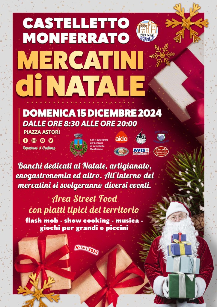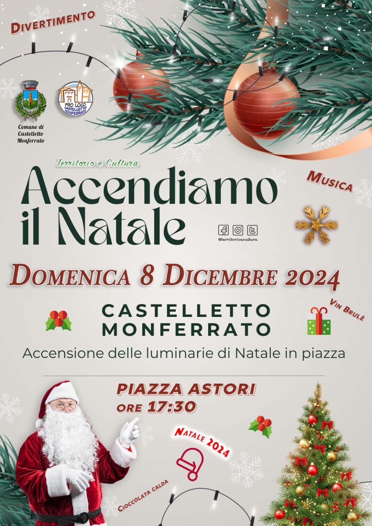 Il Sindaco Gianluca Colletti commenta: “Quest’anno vogliamo regalare a tutti cittadini un Natale speciale, fatto di calore, condivisione e speranza. Vi invitiamo a partecipare numerosi alle iniziative e a vivere insieme la magia delle festività”. Per consultare il programma completo e rimanere aggiornati su eventuali modifiche, è possibile visitare il sito ufficiale del Comune di Castelletto Monferrato o seguire i nostri canali social. L’inaugurazione ufficiale delle festività avrà luogo l’8 dicembre con l’accensione delle luminarie artistiche che illumineranno le vie del centro storico e delle frazioni.