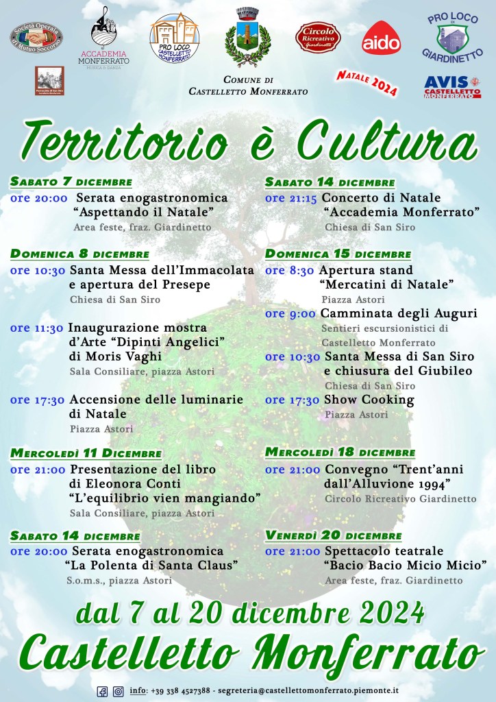 ricco programma di eventi e iniziative che animeranno il paese monferrino durante le festività natalizie. Con l’obiettivo di creare un’atmosfera magica e coinvolgente per cittadini e visitatori, il calendario natalizio 2024 prevede appuntamenti dedicati a grandi e piccini, all’insegna della tradizione, della cultura, della musica, dell’enogastronomia e della condivisione.
