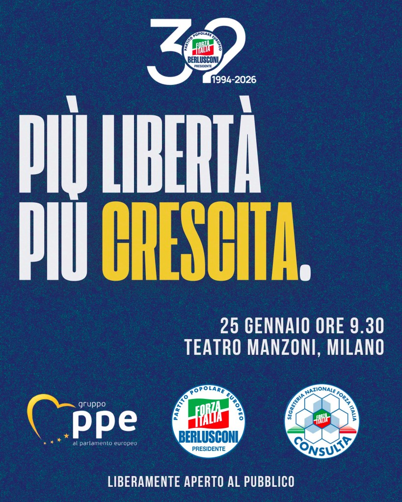 Si è svolta domenica 25 gennaio al Teatro Manzoni di Milano la Convention di Forza Italia dal titolo “Più libertà, più crescita”, un appuntamento di alto profilo politico che ha visto la partecipazione di esponenti istituzionali, rappresentanti del mondo dell’impresa, dell’accademia e dell’informazione, riuniti per discutere del futuro dell’Italia in una prospettiva locale, europea e internazionale. Alla Convention ha partecipato una nutrita delegazione di Forza Italia della provincia di Alessandria, capitanata da Gianluca Colletti e Davide Buzzi Langhi, a testimonianza del forte radicamento del partito sul territorio e dell’attenzione verso un confronto politico che guarda allo sviluppo concreto delle comunità locali. Il filo conduttore dell’intera giornata è stato il binomio libertà e crescita, declinato come motore fondamentale per lo sviluppo del Paese. Un’Italia che cresce è un’Italia che valorizza l’iniziativa, la competitività e il merito, senza rinunciare alla propria vocazione europeista e al ruolo strategico nello scenario internazionale. Tra gli interventi più significativi, quello del Ministro degli Esteri e Vicepresidente del Consiglio Antonio Tajani, Segretario Nazionale di Forza Italia, che ha sottolineato con forza i risultati ottenuti dal Governo anche grazie al contributo determinante di Forza Italia. Tajani ha ribadito come il partito continui a portare avanti con coerenza i valori del Presidente Silvio Berlusconi, fondati su libertà, responsabilità e centralità dell’impresa come leva di crescita economica e sociale. Di grande rilievo anche l’intervento del Presidente della Regione Piemonte Alberto Cirio, Vice Segretario Nazionale di Forza Italia, che ha rimarcato la coerenza del movimento con i propri valori fondanti e la capacità di dare risposte concrete alle richieste dei cittadini. Cirio ha definito Forza Italia come una forza politica rassicurante, che non alimenta paure o tensioni sociali, ma lavora con serietà e pragmatismo per la crescita e lo sviluppo del Paese, seguendo programmi chiari e condivisi. A margine della Convention, Gianluca Colletti, Sindaco di Castelletto Monferrato e Responsabile Enti Locali di Forza Italia della provincia di Alessandria, ha dichiarato: da Milano è arrivato un messaggio chiaro: Forza Italia è una forza politica solida, coerente e centrale nel Governo del Paese. Libertà e crescita non sono slogan, ma obiettivi concreti che come amministratori locali siamo chiamati a realizzare ogni giorno sui territori. Forza Italia non gioca sulla paura dei cittadini, ma offre risposte serie, programmi credibili e una visione di sviluppo che mette al centro i Comuni, le imprese e il lavoro. È questo il modello che vogliamo continuare a portare avanti anche nella provincia di Alessandria. La Convention ha visto inoltre la partecipazione di numerosi ospiti di primo piano, tra cui Stefano Benigni, Letizia Moratti, Carlo Calenda, oltre a importanti voci del mondo dell’economia, dell’impresa e dell’informazione come Emma Marcegaglia, Carlo Cottarelli, Gianfelice Rocca, Stefano Caselli, Antonio Polito e Alessandro Sallusti. Un confronto ampio e articolato che ha confermato la volontà di Forza Italia di essere protagonista di una politica fondata su libertà, crescita e competitività, capace di guardare al futuro con responsabilità e visione, partendo dai territori e arrivando all’Europa.